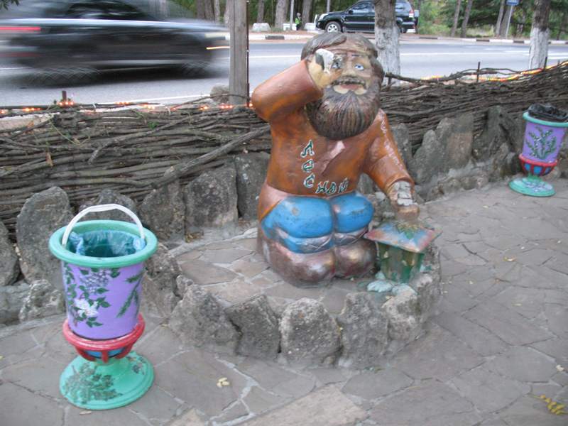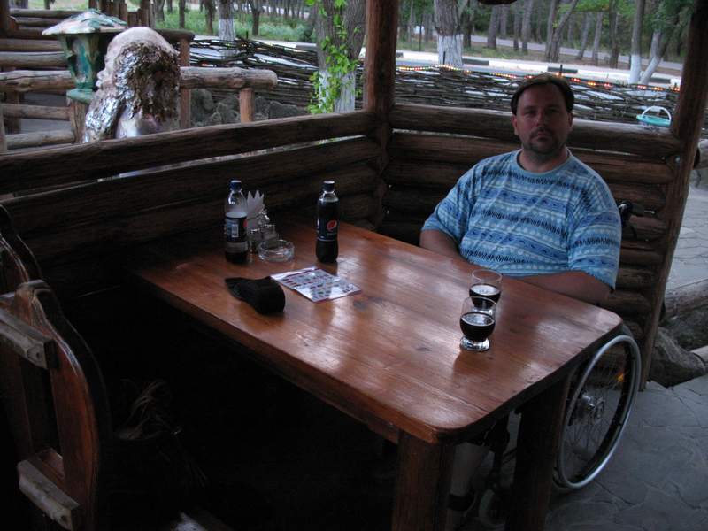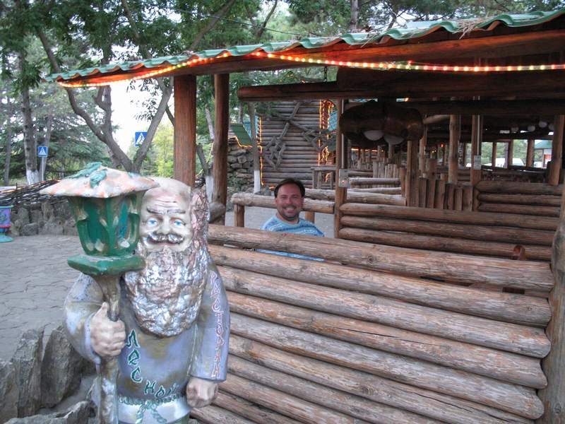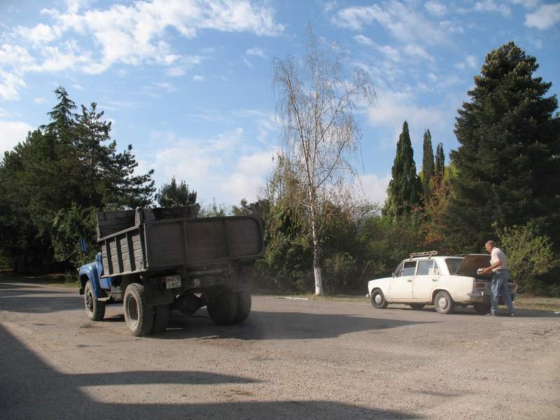 Auf der Suche nach einem Campingplatz (>>Navi!) gelangten wir auf einem abenteuerlichen Feldweg bergauf. Das war, mal wieder, nix. Aber an der parallel verlaufenden Hauptstraße gab es ein Lokal. Pelmeni, Huhn mit Fritten. Lausige, unwillige Bedienung mit Hang zum frühen Feierabend. Kein Wunder, daß das Lohnniveau so niedrig ist.. |
