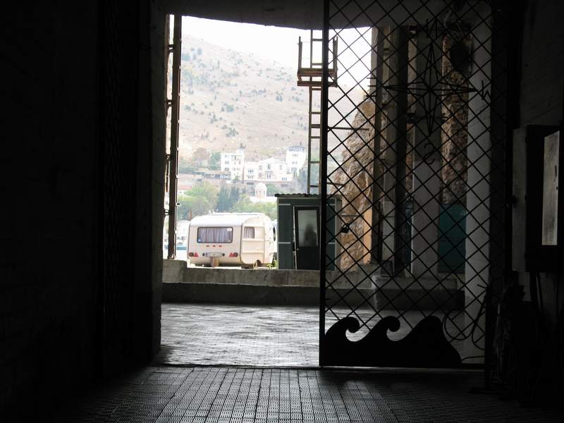 Balaklawa, the nuclear bomb safe submarine harbour, was reached by us at 17.30h. Closed. Only a few pics from outside were possible an we decided to take a look inside at the next day! |