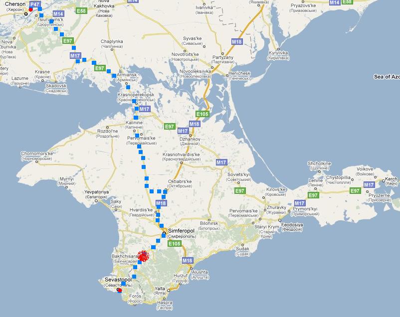 Bis in die Nacht fuhren wir nach Cherson, wo wir wieder auf einem T.I.R.-Parking schliefen. Dort für nur 10 UAH.. By night we reached Cherson, where we took a guarded truck parking again. Here for only 10 UAH.. |