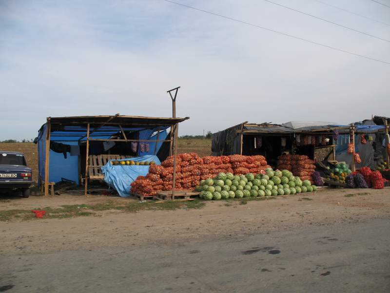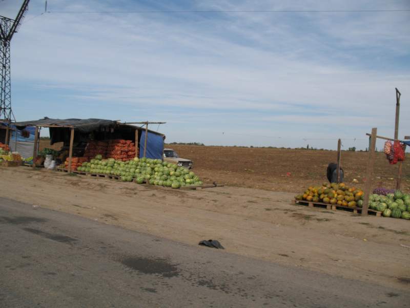 Am Straßenrand immer wieder Melonen, Kartoffeln, Zwiebeln, Paprika. |
