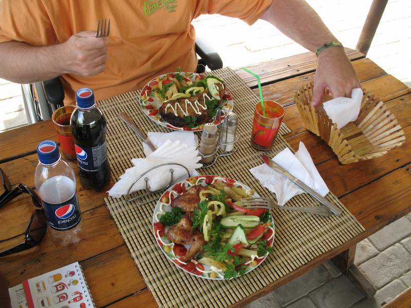 Lunchbreak in a little Restaurant. Down left our NoWordBook, our great helper in every communication situation. |