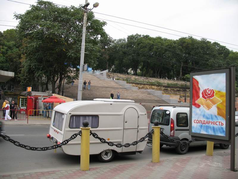 Hier kauft Anke am Stadtrand von Odessa noch etwas Proviant zur Nacht und weiter geht's zur ukrainisch-moldauischen Grenze in Palanca. Anke gets some victuals for the night and then we went to the ukrainian-moldovan border at Palanca |
