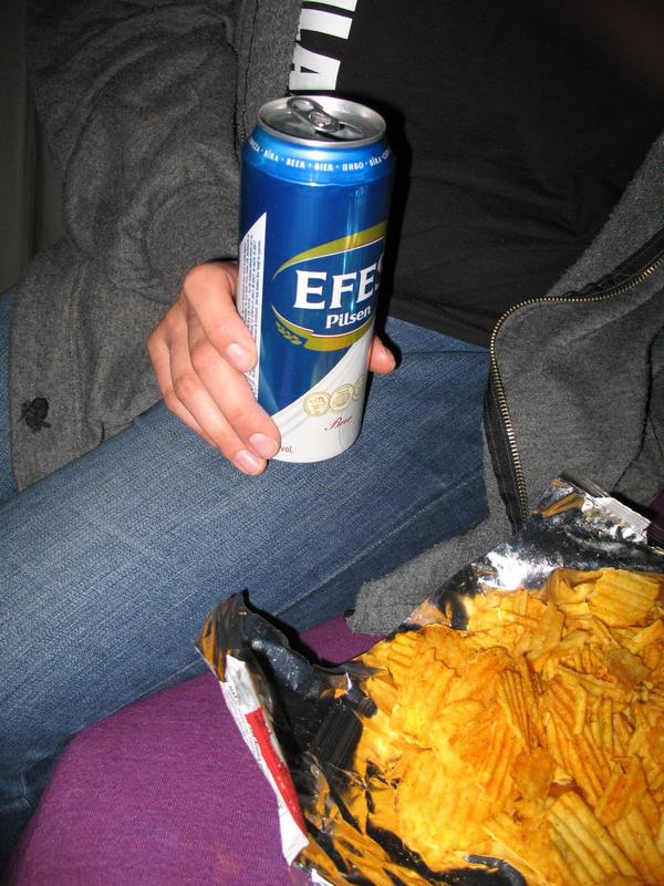 Near Kars it started raining again and we stopped at a fuel station for the night, had a beer and some potato chips to celebrate Ankes birthday. |