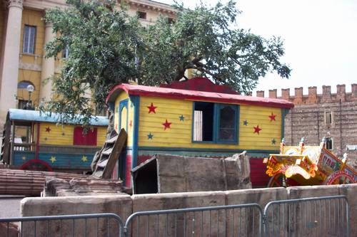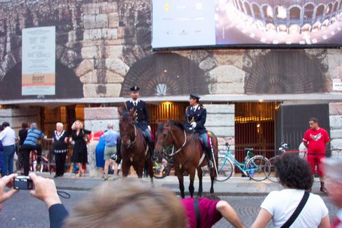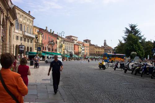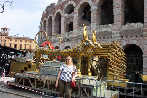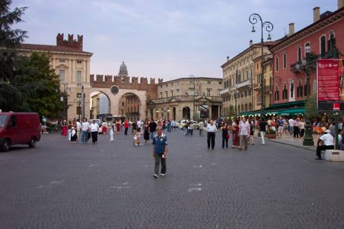 Pech. Nun war es halb 12 und wir mussten 6Std. totschlagen. Zurück in die Stadt hätte sich nicht gelohnt, da der Flughafen weit außerhalb liegt. In Verona angekommen hatten wir noch eine Stunde für duschen und essen. Verona ist so, wie ich mir italienische Urlaubsorte immer vorgestellt habe: klein, hübsch sehr sauber, viele Deutsche. Die Meisten kommen für einen Opernbesuch hierher. |