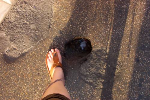Ein Loch im Fußweg vor unserem Hotel. In Rom muss man aufpassen, dass man sich beim Laufen nicht zu sehr ablenken lässt. Auf den schlechten Straßen hat man schnell einen gebrochenen Fuß. |