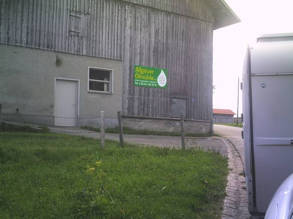 ______________________ Off, direction of Kempten/Allgäu and there we went to a little rape-oil-fuelstation on a farm, where the oil is freshly cold-pressed! 74ct/Litre. |