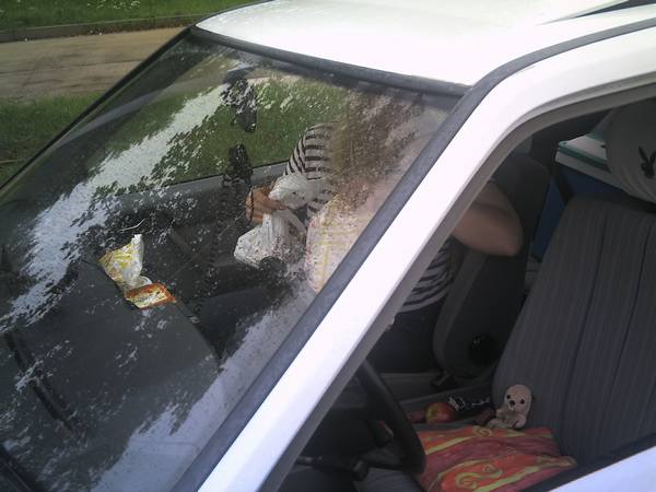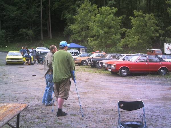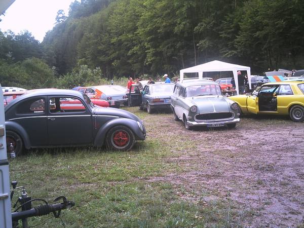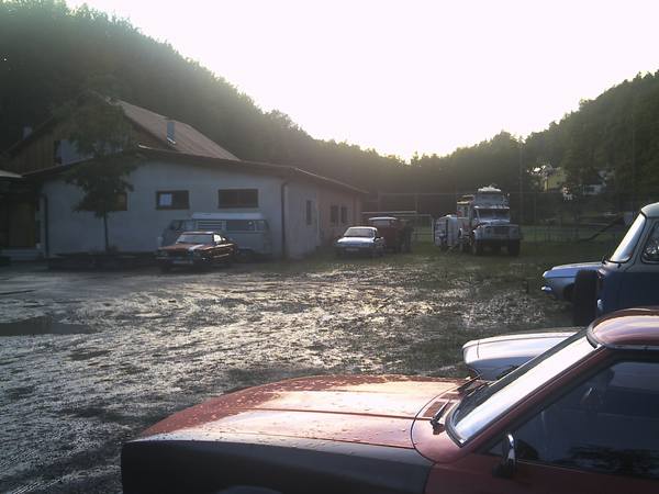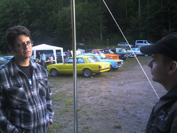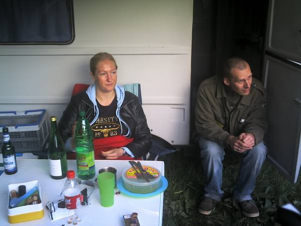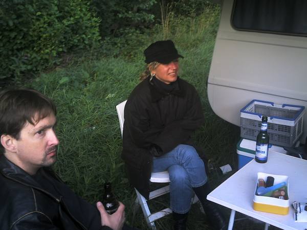 _____________________ Anke picked big leaves to give us a dried carpet. Hasn't worked very good. No pics of friday night, 'cause Anke and me decided to get stoned by wine and Jägermeister/Cola and other goodies and haven't even thougt about taking pics! At 0300 we went to bed and were not able to move a car at the next day. In no way. Well done. But: In this way we coudn't have lost the race. Hmpf! |