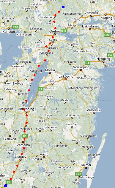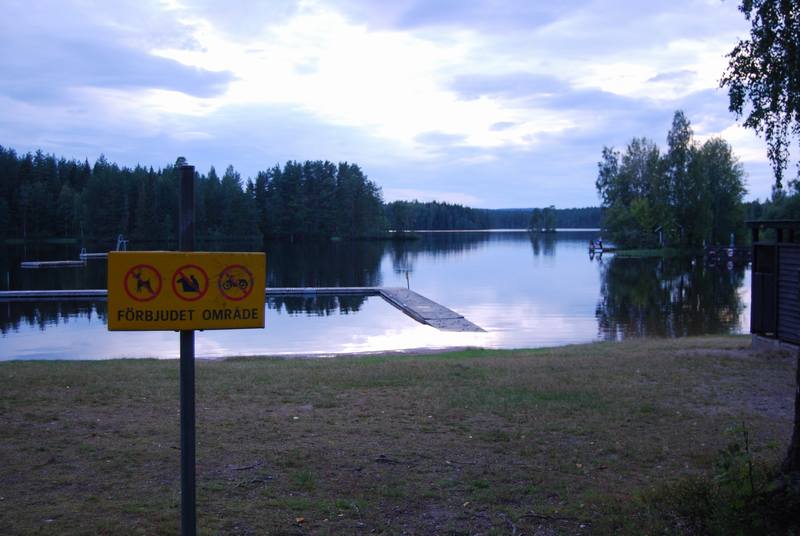 In Jönköping bogen wir links ab und fuhren, ebenso links des Vätternsees, über Karlsborg bis hinter Örebro, wo wir einen Campingplatz anliefen. Der Regen hörte auf und die Sonne kam raus. Super. In Joenkoeping we turned left and drove left of the Vaettern-Lake via Karlsborg and a little after Oerebro we checked in on a camp ground. Rain stopped. Sweet. |