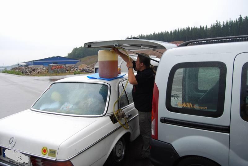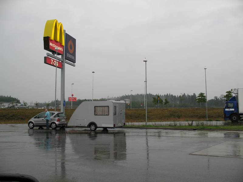 Die Nacht im Industriegebiet verlief recht ruhig. Es regnete allerdings in Strömen. Vormittags wurden wir von einem heftigen Gewitter geweckt. Ganz in unserer Nähe schlug ein Blitz ein, der ganze Wohnwagen hat gewackelt von der Druckwelle. Vor der Weiterfahrt wollte Julian noch Pöl tanken. Und das bei dem Wetter! Aber zum Glück hat der Kangoo eine so große Heckklappe, die prima als Regendach benutzt werden kann. Als wir um halb drei in Karlsborg ankamen, regnete es zum Glück nicht mehr. Geld holen, rein in den ICA (Supermarkt) und Lebensmittel kaufen. Endlich wieder Tuben! Inhalt dieser so leckeren Tuben ist Käse als Hauptkomponente, und den gibt es in allerlei Geschmacksrichtungen: Schimmelkäse, Käse pur, Krabben, Krebs, Gemüse, Bacon... Lecker auf Brot oder als Dip. Gegen acht Uhr erreichten wir dann Liens Camping. Bewertung CP: Schöner, ruhiger Platz mit vielen hohen Bäumen. Man steht nicht zu dicht und einen See gibt es auch, in dem man baden kann. Viele Langzeitcamper, Hütten vorhanden. Die sanitären Anlagen sind sauber aber veraltet, nicht für Rollstuhlfahrer geeignet. Es gibt zwar ein Behinderten-WC, aber keine extra Dusche. Küche mit drei kompletten Herden, sehr ordentlich. 18€ pro Nacht mit Gespann, die Duschmarken muss man extra kaufen. www.lienscamping.se Anmerkung Keks: Während die Dusche, die das Team Hansti Hotwheelz benutzte einwandfrei funktionierte, mußten Keks Enterprises die schwere Wahl zwischen eiskalt und polareiskalt wählen. Warmes Wasser gab es in Dusche Nr. 2 nicht. Einziger Minuspunkt für diesen Campingplatz. |