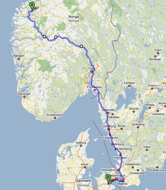 Bei Oslo angekommen stand an den Verkehrsschildern etwas von „Automatic Bom“, also automatischer Maut. Ich fuhr einfach durch und bemerkte nichts davon. Irgendwann waren wir auch wieder aus dem Ballungsgebiet draußen und ich wertete das Fehlen eines Polizeiwagens hinter mir als Bestätigung dafür, daß ich nichts falsch gemacht hatte. Mehrere Baustellen unterbrachen das Fahrvergnügen auf der E6 in Richtung Schweden. Auch mußten wieder Mautstationen passiert werden. Jedes mal wurden 10 oder 20 NOK fällig. Nervig. Der Hammer war aber die Mautstation direkt vor der Grenze zu Schweden. Ich versuchte, sie über die parallele Landstraße zu umfahren. Doch auch dort stand direkt vor der Grenzbrücke eine Bomstation. Ich dachte, nur Bananenrepubliken drangsalieren ihre Besucher mit „Ausreisegebühren“. In Schweden wurde eine Tankstelle gesucht. Es war mittlerweile 22.45 Uhr. Doch es fand sich nichts. Nicht einmal ein Tankomat, von offenen Geschäften zu schweigen. Ich hatte gehofft, noch irgendwo Hamburgersoßen einkaufen zu können, die in Schweden wohl ganz besonders gut sein sollen. Schlußendlich fanden wir eine Q8-Tankstelle, die wir zwei Minuten vor Ladenschluß erreichten. Ich ließ den Tank zu umgerechnet 1,17 EUR /L vollaufen. Mangels Hamburgersoßen im Tankstellenshop nahm ich eine Tube „Slotts“-Senf für 25 SEK mit, die auch nicht schlecht schmeckte. Es ging weiter in Richtung Malmö. Wie weit wir es heute noch schafften, überließ ich meiner Müdigkeit, die ich mit holländischen Energydrinks konterkarierte. In Göteborg lächelte mich eine McDonald’s-Werbung an, sodaß ich noch kurz rausfuhr und mir einen McChicken für 6 SEK leistete. Sehr komfortabel: Kreditkartenzahlung war kein Problem. Um 4.30 Uhr standen wir an der Öresundsbron und setzten nach Dänemark über. Die Müdigkeit gewann so langsam den Kampf und so fuhren wir hinter Kopenhagen von der Autobahn ab und suchten einen Nachtplatz. Nach halbstündiger Suche gab ich auf und wollte mich an eine Feldwegkreuzung inmitten von Bauernhöfen stellen. Taylan hatte Bedenken, der Bauer würde uns am nächsten Morgen anscheißen. In Deutschland hätte man davon ausgehen konnten, doch hier sah ich das ganz locker und bat ihn, seine deutsche Denke endlich abzulegen. Nach über 18 Stunden am Steuer weigerte ich mich, noch einen Meter weiter zu fahren und so ging es dann zu „Bette“. |