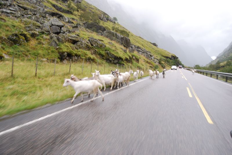 Hinter Sogndal ging es mit der nächsten Fähre von Mannheller nach Fodnes. Sie kostete 88 Kronen und es gab einen wunderschönen Ausblick über den Sognefjord. Wieder an Land ging es nun ohne weitere Fähren nach Oslo. Wir stießen auf die Europastraße E16 Irgendwann war diese gesperrt wegen Bauarbeiten. Über die Straßen 33 und 34 wurden wir umgeleitet. Hinter einer Kurve standen einige Polizeiautos links und rechts entlang der Straße und hielten jeden auf, der des Weges kam. Alkoholkontrolle. Der freundliche Polizist bat zunächst um meinen Führerschein um mich dann pusten zu lassen. 0,00 Promille. Eine Sache von zwei Minuten. Er beglückwünschte mich und es folgte das obligatorische Gespräch über unsere Reise. Wir verabschiedeten uns und fuhren weiter. So stelle ich mir sinnvolle Verkehrspolizeiarbeit vor. Aber dazu wurde die nötige Zivilisationsstufe in Deutschland wohl noch nicht erreicht. |