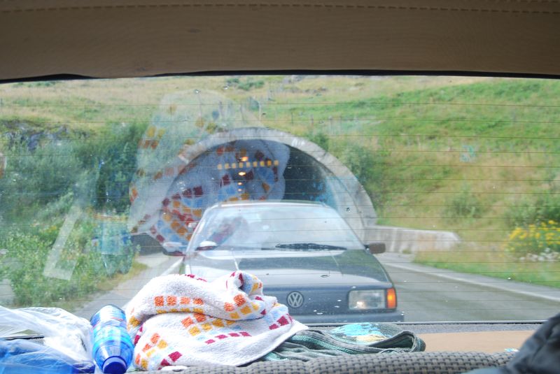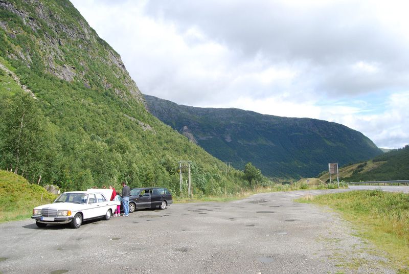 Auf einmal standen wir an einer Mautstation. Die Durchfahrt sollte 180 NOK kosten. Für was, das wußte ich nicht. Ich zahlte mangels Alternative. Es folgten sechs oder sieben Tunnel mit mehreren Kilometern Länge. Ich vermute, hier werden wie am Nordkapptunnel die Baukosten mit Maut refinanziert und dieselbe wird abgeschafft, sobald alles bezahlt ist. Im vorletzten Tunnel stand ein VW Passat am Straßenrand. Ich hielt an – ich hatte ja Zeit. Eine fünfköpfige Familie war hier liegengeblieben. Ich fragte auf Englisch nach, was denn passiert war und der bestimmt gerade erst 10-jährige Junge war der einzige der mich verstand. Er zeigte auf den Kühlwasserbehälter und erklärte, daß da was kaputt sei. Ich bot der Familie an, sie mit dem Abschleppseil aus dem Tunnel zu schleppen, in dem es höllisch laut war. Der Vater hegte Zweifel, ob mein Auto das schaffen würde. Schließlich ging es im Tunnel stark bergauf. Ich legte optimistisch das Abschleppseil an und es ging los. Vollgas im zweiten Gang ging es den Tunnel hinauf. Es funktionierte wunderbar. Nach zwei oder drei Kilometern erreichten wir das Ende des Tunnels und ich bog mit dem Passat am Abschleppseil auf einen Parkplatz ab. Die Familie war so dankbar wie ich Menschen selten erlebt hatte. Alle fünf dankten mir tausend mal. Ich vergewisserte mich, daß sie irgendwie Pannenhilfe bekommen konnten. Die Mutter erzählte mir in ihrem spärlichen Englisch, daß ihr Mann Marokkaner und ihre Mutter Polin sei. "A multinational family" Wir unterhielten uns noch kurz – so gut es ging – über Deutschland und den Daimler (der marokkanische Vater fand das Auto verständlicherweise toll) und ich wollte mich dann verabschieden. Da drückte mich die Oma mit einer Freudensträne im Knopfloch und legte mir ungefragt 100 NOK in die Hand. Ich wollte eigentlich gar kein Geld, aber ich habe mal gehört, daß es in manchen Kulturen unhöflich sei, Geschenke abzulehnen, also nahm ich es an – schließlich wollte ich mich ja nicht wieder unbeliebt machen. |