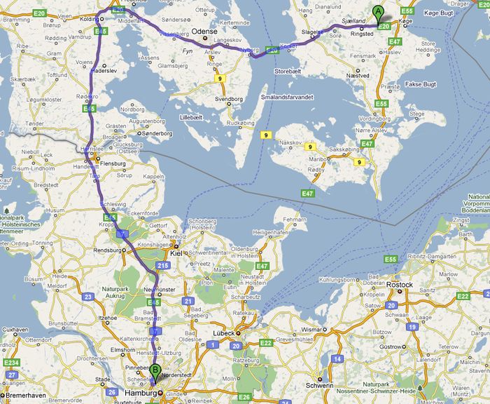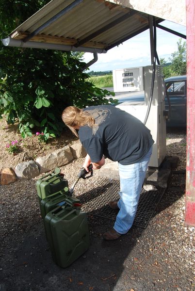 Anschließend fuhren wir zur Autoschmiede Ringsberg, wo man laut Internet Pflanzenöl tanken konnte. Tatsächlich gab es dort den leckeren Lebenssaft, sodass ich für 0,876EUR/L Tank und drei Wehrmachtskanister füllen konnte. Taylan rief seinen Freund in Hamburg an, wir meldeten ETA 18 Uhr in die Freie und Hansestadt und stellten das Navi auf die Adresse ein. |