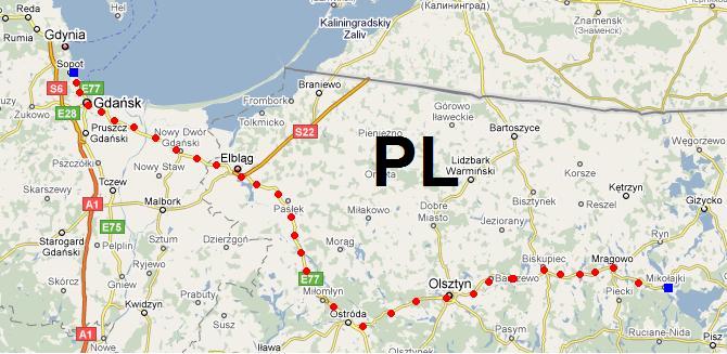 Unser Navi wollte uns ernsthaft in diesen Feldweg schicken, "kürzeste Route", hihi. Aber nix da, wir fanden auch auf asphaltierten Strassen nach Danzig. Our sat-navi really lead us into this way. "Shortest Route", hihi. But not with us, we got to Danzig on asphalt roads. |