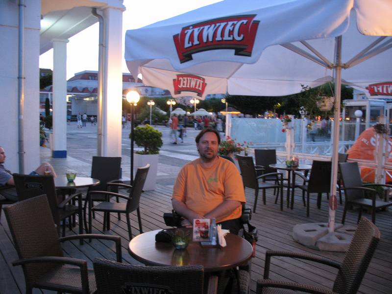 ![]() Anke wollte die Seebrücke von Sopot/Zoppot sehen. Alles zugebaut, logisch. Ein Schild zeigte Weiterfahren o. Camping. Anke sagt Camping und zack waren wir auf einem sehr vollen, aber dennoch ruhigen CP in Sopot. E-Rolli abladen und los gehts, durch den Kurpark zur Promenade. In Sopot/Zoppot Anke wanted to see the old pier from the car. All hidden behind concrete. We went to the camp ground, which was very full but quiet. We unloaded the wheelchair and went threw the cure park to the promenade. |